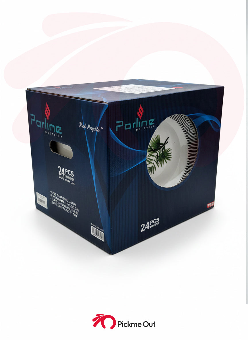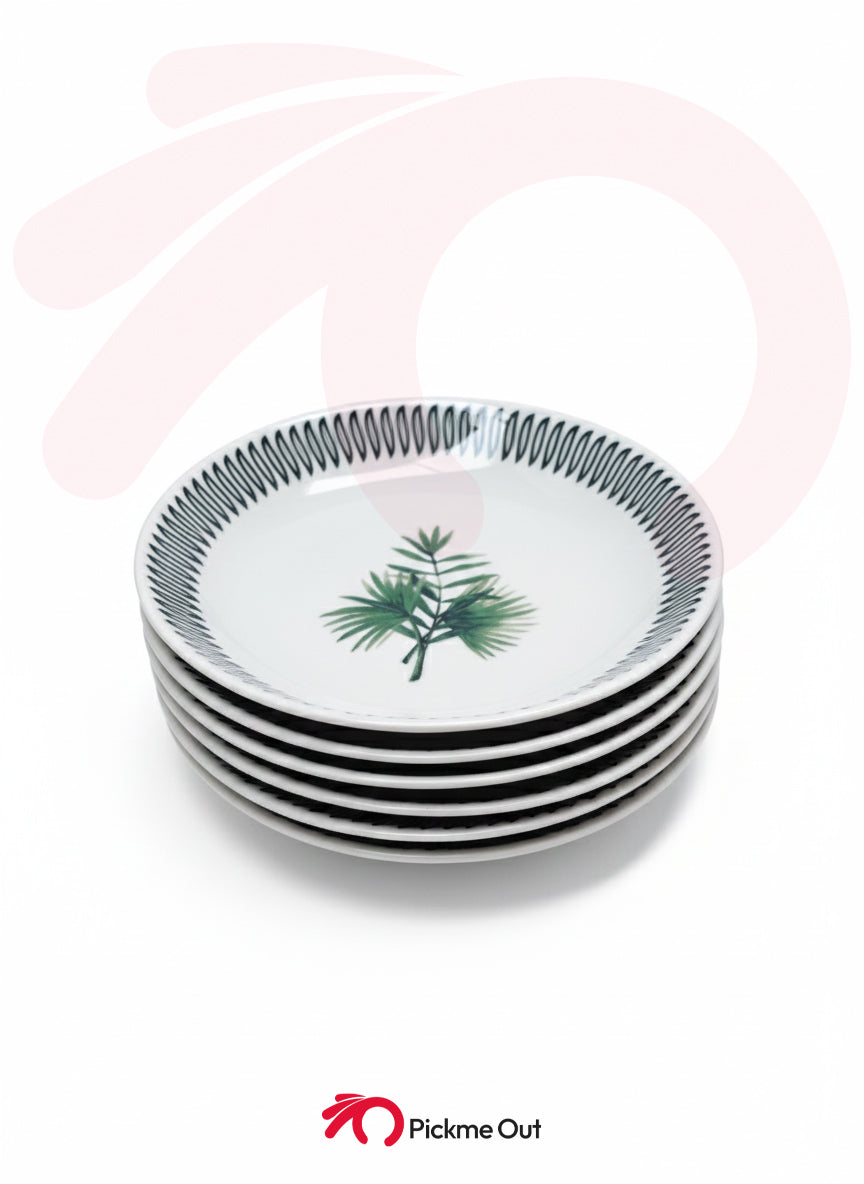 Elevate your dining experience with the [Insert Title Choice Here]. Expertly crafted from premium Turkish porcelain, this 24-piece set blends contemporary design with timeless durability. Featuring a delicate central fern motif and a striking monochrome geometric border, this set brings a touch of nature and modern luxury to every meal.