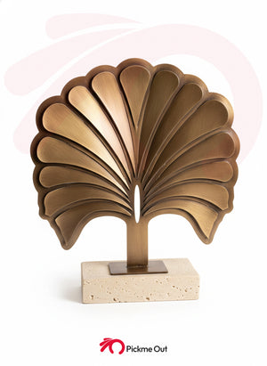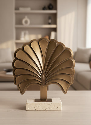 Elevate your interior styling with the [The Palmira], a striking decorative piece that perfectly balances architectural precision with natural warmth. Drawing inspiration from vintage Art Deco shell motifs and stylized palm fronds, this sculpture creates an instant focal point of refined elegance.