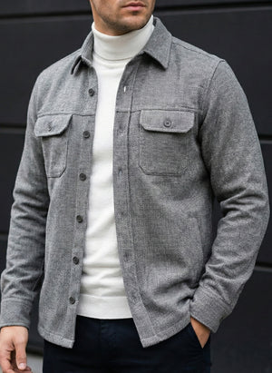 Upgrade your everyday wardrobe with this modern grey textured overshirt, designed for effortless layering and all-season versatility. Crafted from a premium woven fabric, it combines the structure of a jacket with the comfort of a shirt—perfect for smart-casual looks.