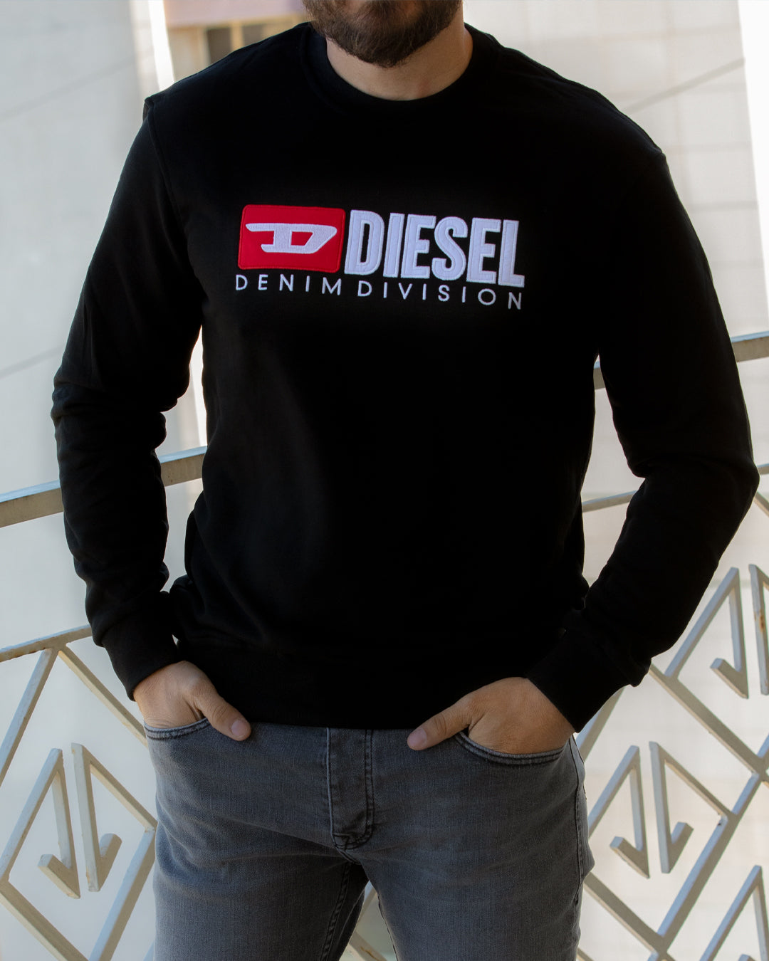 Regular-fit sweatshirt in loopback cotton jersey, featuring the Diesel Denim Division logo appliquéd on the front.