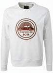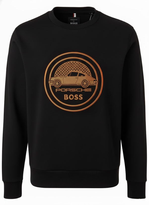 BOSS MEN X Porsche Soleri Logo Embroidery Sweatshirt  Highlights open white bold logo embroidery on chest crew neck long sleeves ribbed cuffs and hem Composition Cotton 97%, Elastane 3%